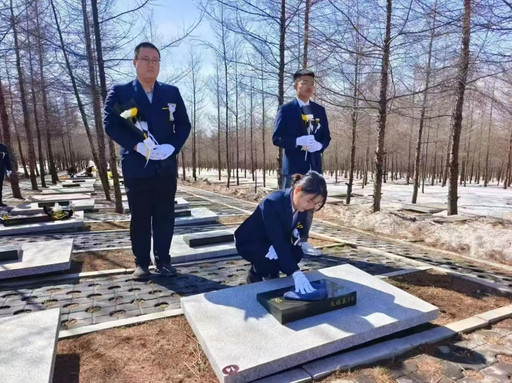 黑龙江省孙吴县北水台山生态人文园工作人员为群众提供代祭扫服务。 徐微 摄